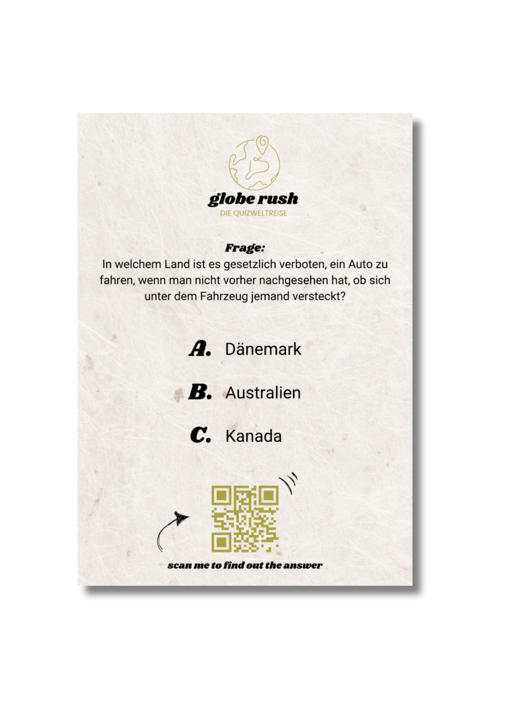 Mit den landesspezifischen Erklärkarten als QR – Code habt ihr die Möglichkeit zusätzlich zu der Quizlösung Hintergrundwissen zum Thema der Quizkarte sowie einen kleinen Einblick in das dazugehörige Land zu erhalten.